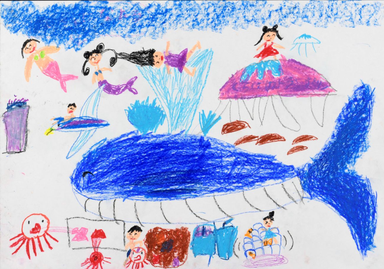 うみで にんぎょと あそびたいな(38×54cm)