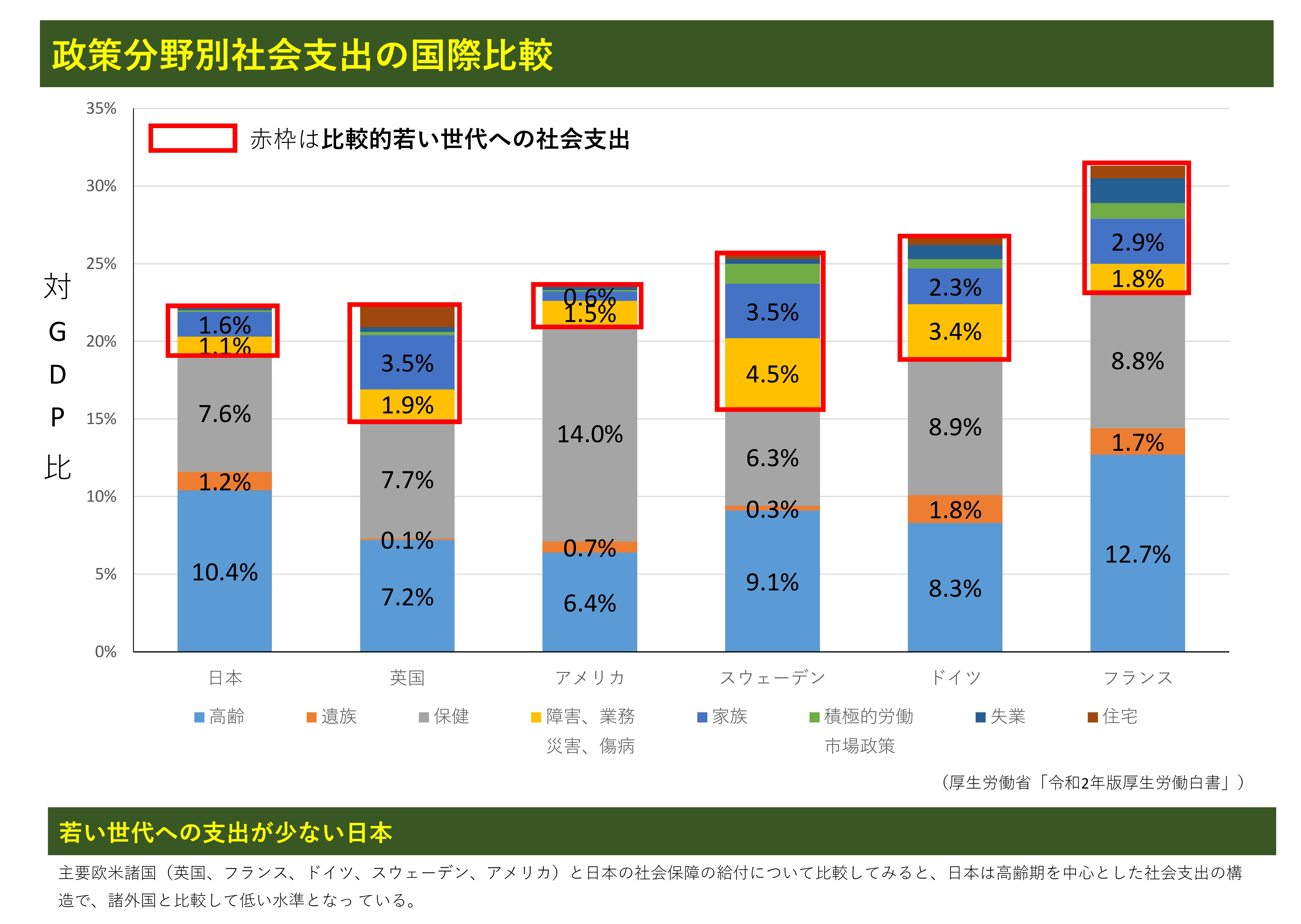 OECD各国の社会支出の内訳