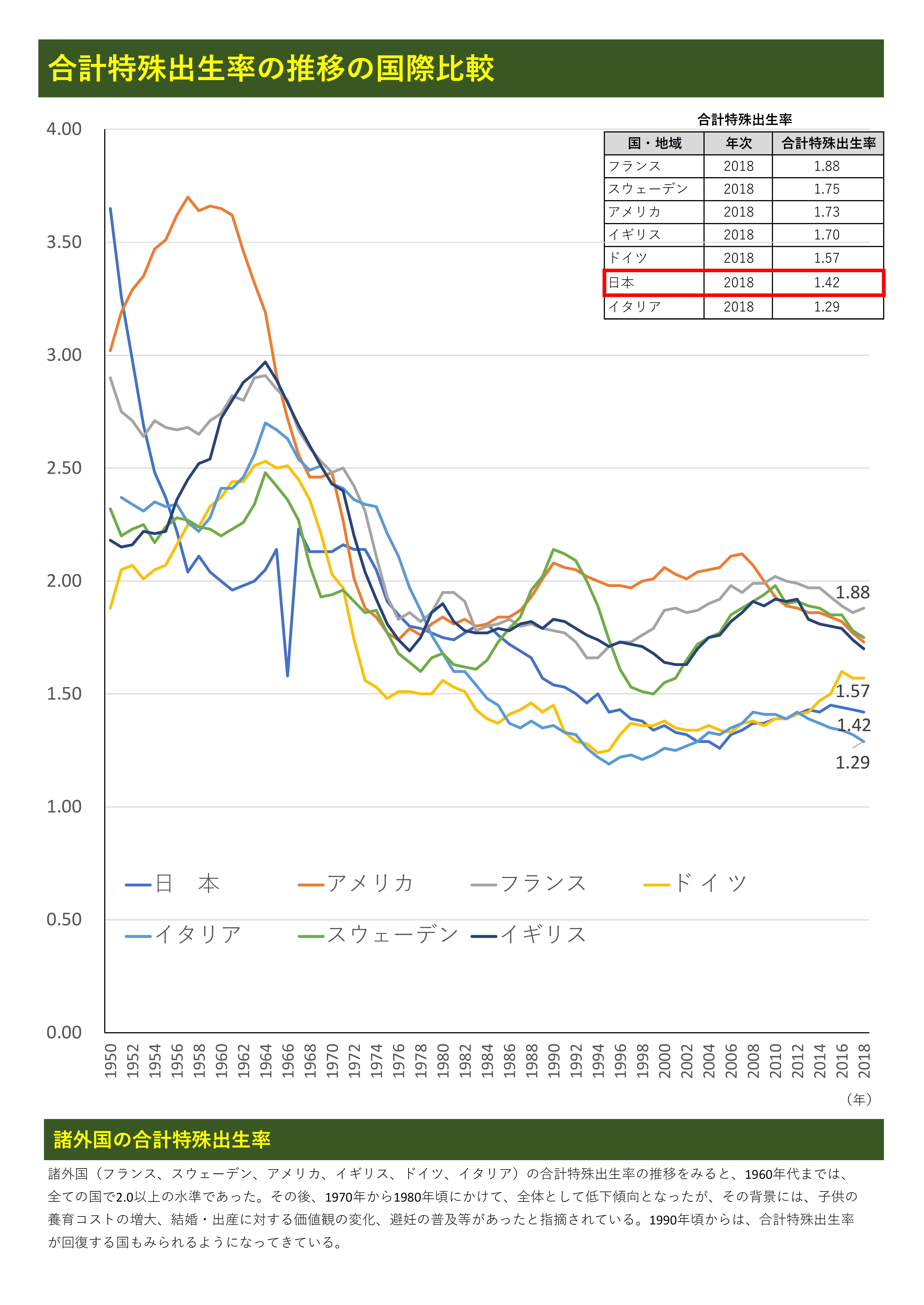 合計特殊出生率の推移の国際比較