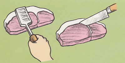 | 主な用具 | フライパン、肉たたきまたはあきびん |